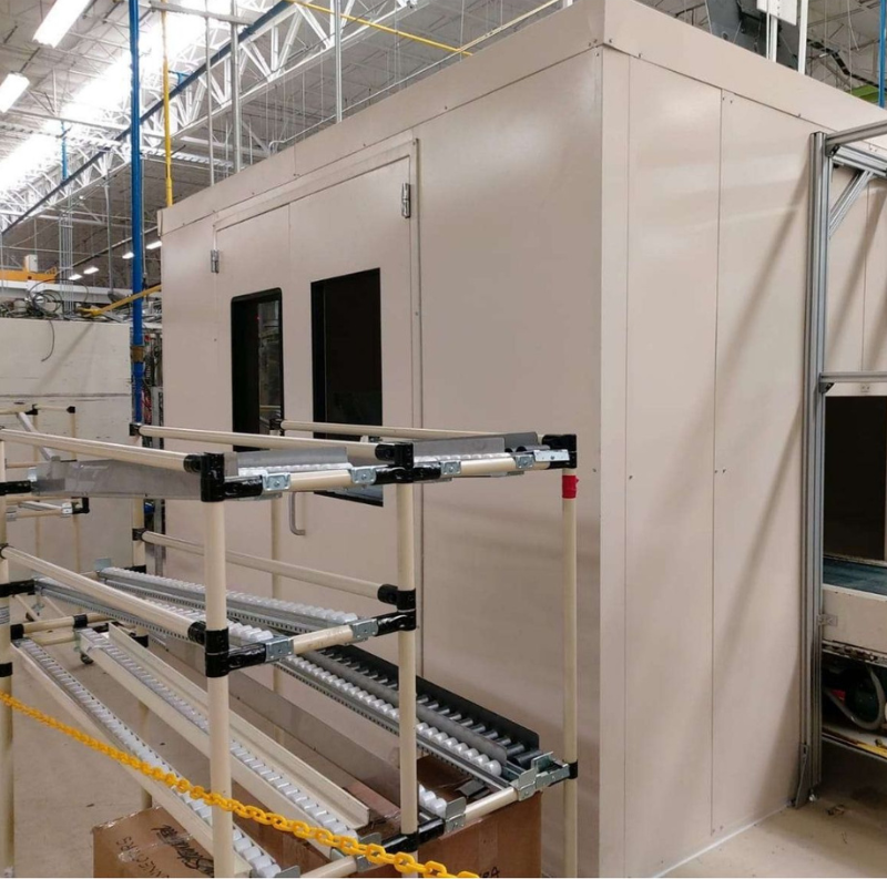 Ante el reto de altos niveles de ruido durante las pruebas de sistemas de refrigeración, se diseñó e instaló una cabina metálica con aislamiento acústico especializado. La solución permitió una reducción de 45 dBA, garantizando el cumplimiento de la NOM-011 y mejorando significativamente las condiciones de trabajo del personal.